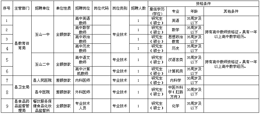 2015江西玉山縣采取直接核辦法招聘9名事業(yè)單位高層次人才公告【招9人】