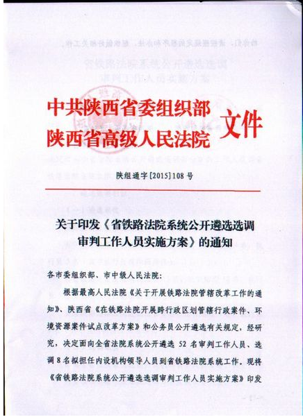 2015陜西省鐵路系統(tǒng)遴選選調(diào)審判人員公告【招60人】