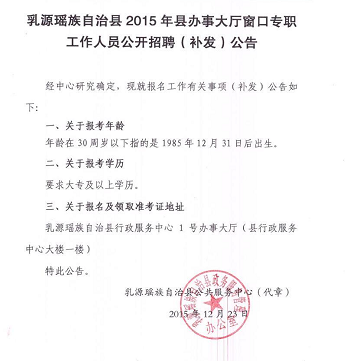 2015廣東乳源縣辦事大廳窗口專職人員招聘補(bǔ)充公告