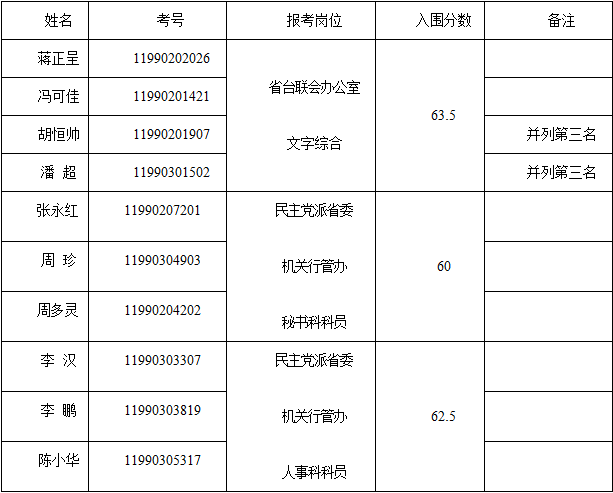 根據(jù)中共湖南省委組織部、省人力資源和社會(huì)廳、省公務(wù)員局《2015年省直機(jī)關(guān)公開(kāi)遴選公務(wù)員公告》要求,經(jīng)報(bào)名、筆試、資格審查等程序,按報(bào)考職位筆試成績(jī)排名和1:3的比例,確定了參加省臺(tái)聯(lián)會(huì)、民主黨派省委機(jī)關(guān)行管辦公開(kāi)選調(diào)機(jī)關(guān)工作人員面試人選,現(xiàn)將有關(guān)事項(xiàng)公告如下: