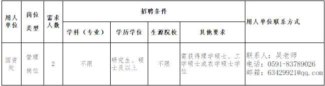 2016福建農(nóng)林大學(xué)國(guó)有資產(chǎn)管理處招聘人事代理人員2名公告【招2人】