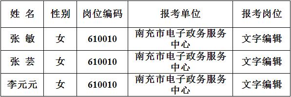 南充市電子政務(wù)服務(wù)中心公開考調(diào)工作人員面試人員名單