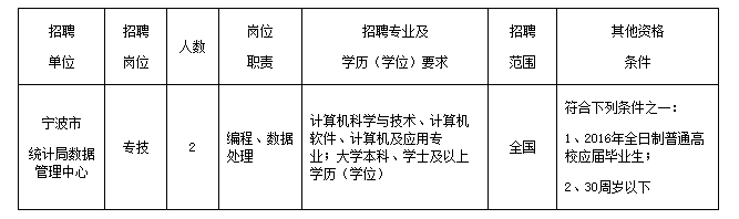 2016浙江寧波市統(tǒng)計(jì)局局屬事業(yè)單位招聘公告【2人】