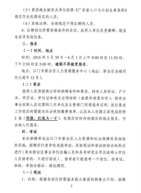 2016上半年廣東江門市新會(huì)區(qū)招聘機(jī)關(guān)雇員、事業(yè)單位職員公告【222人】