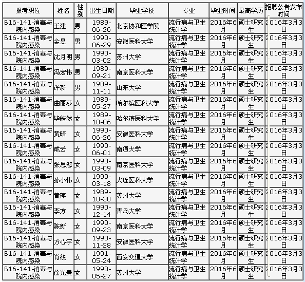 根據(jù)2016年3月3日在江蘇人力資源和社會(huì)網(wǎng)站發(fā)布的《江蘇省衛(wèi)生和計(jì)劃生育委員會(huì)直屬事業(yè)單位2016年公開招聘工作人員公告》的要求,我單位已確定參加面試人員名單,現(xiàn)將有關(guān)面試工作安排公告如下: