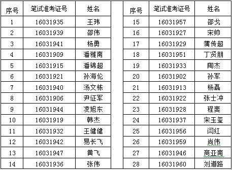 根據(jù)懷遠縣“公務用車運行管理中心”公開選聘駕駛員公告及筆試結果,下列考生將進入面試(實際駕駛操作)。請參加面試考生于2016年3月26日上午7:00前帶本人有效身份證和筆試準考證到懷遠縣人力資源市場(懷遠縣禹王路786號)集合參加面試,面試費用80元/人。逾期不候,視為自動放棄。