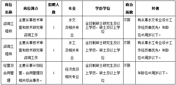 淮河水利委員會(huì)水利水電工程技術(shù)研究中心(網(wǎng)址http://sub.hrc.gov.cn/hwjyzx/)是水利部淮河水利委員會(huì)直屬事業(yè)單位,正處級(jí)建制,國(guó)家發(fā)改委認(rèn)定的甲級(jí)工程咨詢機(jī)構(gòu),主要從事治淮基建工程項(xiàng)目設(shè)計(jì)審查、評(píng)估及專題專項(xiàng)技術(shù)研究等工程咨詢工作。根據(jù)工作需要,淮河水利委員會(huì)水利水電工程技術(shù)研究中心2016年面向社會(huì)公開(kāi)招聘3名工作人員。按照《淮委2016年事業(yè)單位公開(kāi)招聘工作實(shí)施方案》要求,現(xiàn)將有關(guān)事項(xiàng)公告如下: