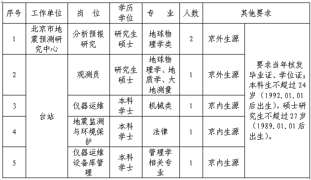 2016北京市地震局事業(yè)單位招聘公告【6人】