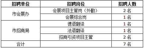 根據(jù)工作需要,武漢市商務(wù)局下設(shè)部門市會展辦與市招商局面向社會公開招聘7名工作人員。招考流程為:報名-資格初審-筆試-面試-體檢政審-入職。具體事宜公告如下: