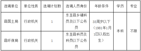 原標(biāo)題:東至縣國土資源局、環(huán)境保護(hù)局機(jī)關(guān)公開選調(diào)工作人員公告