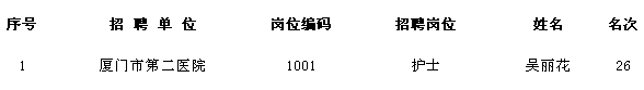 原標(biāo)題:廈門市第二醫(yī)院公開招聘編制外護(hù)理人員進(jìn)入體檢遞補(bǔ)人員名單