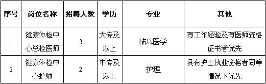 我院健康體檢中心因工作需要,招收以下非在編合同制人員: