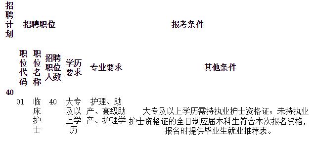 本次仁懷市人民醫(yī)院面向社會計劃公開招聘護理人員40名, 職位一覽表如下: