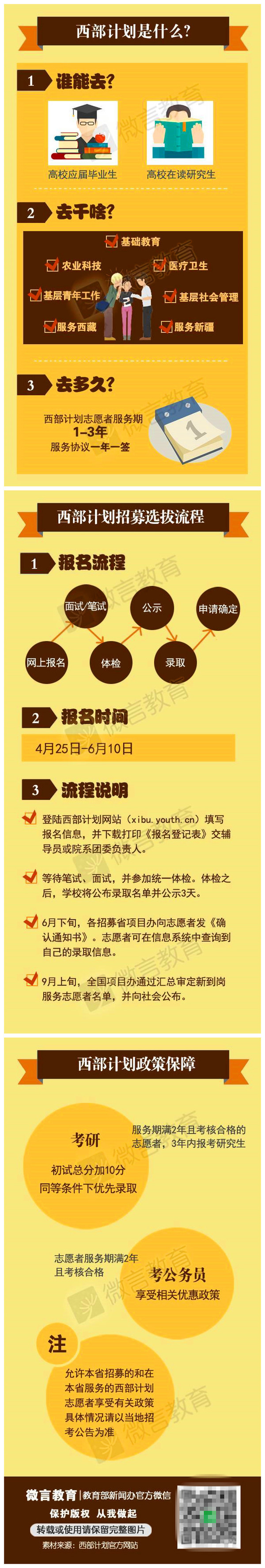 目前,2016年大學(xué)生志愿服務(wù)西部計(jì)劃正在招募中,6月10前接受普通高校應(yīng)屆畢業(yè)生和在讀研究生報(bào)名( http://xibu.youth.cn/)。今年由中央財(cái)政支持的全國項(xiàng)目計(jì)劃派遣1.83萬人左右,想了解更多信息快來戳下圖!