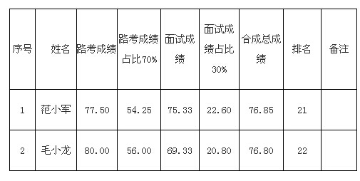 根據(jù)峽江縣機(jī)關(guān)事務(wù)管理局公務(wù)用車(chē)服務(wù)中心招聘合同制司勤人員工作方案有關(guān)要求,現(xiàn)因兩位考生政審不合格,不予錄用,出現(xiàn)的空缺崗位,按合成成績(jī)從高到低依次予以遞補(bǔ),遞補(bǔ)人員名單公告如下: