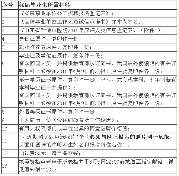 請(qǐng)通過(guò)2016年山東省屬事業(yè)單位初級(jí)崗位公開(kāi)招聘筆試進(jìn)入面試范圍人員,按以下要求由考生本人參加資格復(fù)審:
