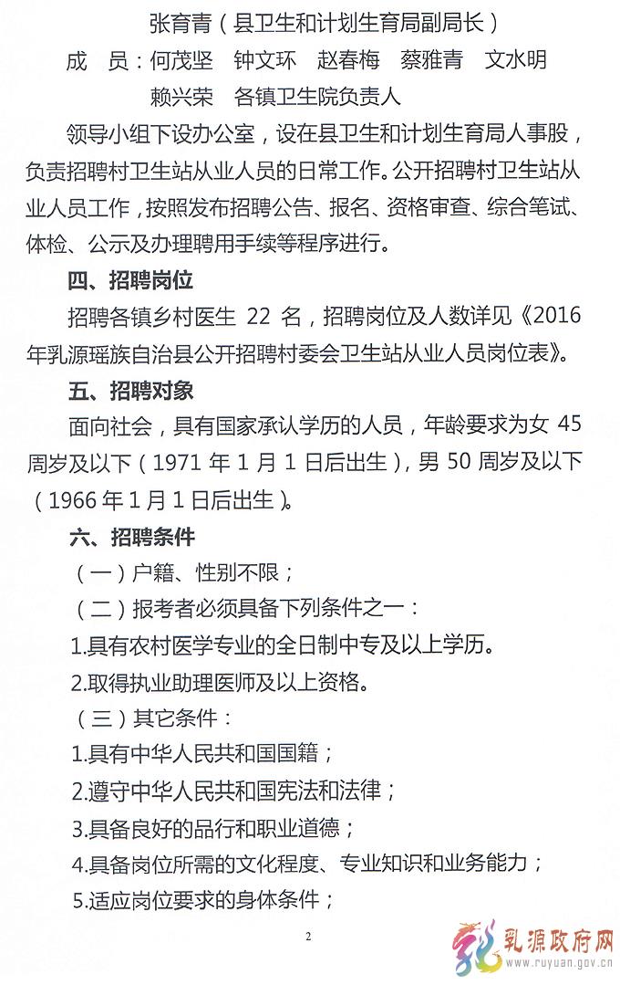 2016廣東乳源瑤族自治縣招聘村衛(wèi)生站從業(yè)人員公告【22名】