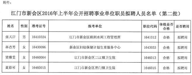 2016上半年廣東江門(mén)市新會(huì)區(qū)招聘事業(yè)單位職員聘前公告(第二批)