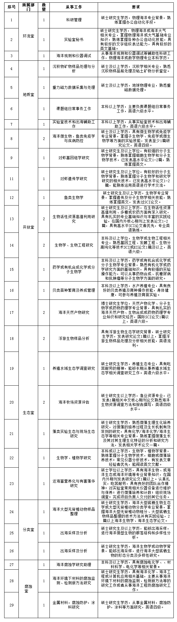 根據(jù)工作需要,2016年中科院海洋所擬面向應(yīng)屆畢業(yè)研究生招聘研究助理35名?,F(xiàn)將具體崗位設(shè)置與工作任務(wù)和報(bào)名的有關(guān)事宜通知如下:
