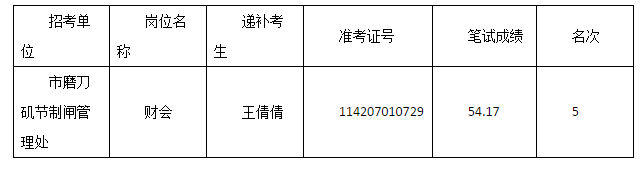 鄂州市水務(wù)系統(tǒng)2016年事業(yè)單位公開招聘資格復審,因第4名考生許瑩放棄資格復審,根據(jù)《鄂州市事業(yè)單位2016年度公開招聘工作人員公告》有關(guān)規(guī)定,在報考同一崗位考生中按照筆試成績從到低分依次遞補的原則,遞補以下考生為資格復審人選: