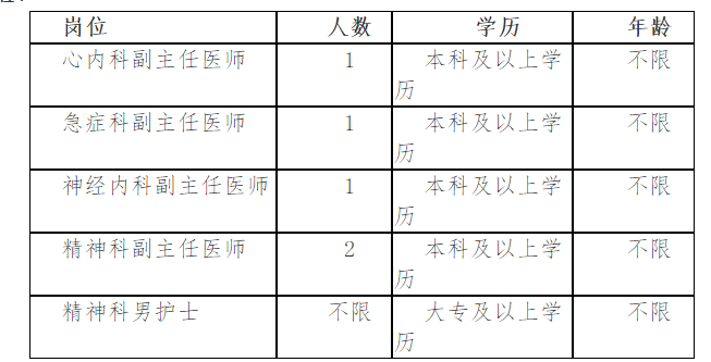 1、(心內(nèi)科、急癥科、神經(jīng)內(nèi)科、精神科)副主任醫(yī)師比照武漢市事業(yè)單位同職級(jí)專技人員待遇、電話詳詢?nèi)私炭啤?/p>