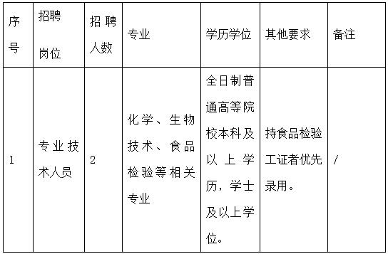 武夷山市茶葉產(chǎn)品質(zhì)量檢驗(yàn)所(以下簡(jiǎn)稱茶檢所)是武夷山市市場(chǎng)監(jiān)督管理局下屬事業(yè)單位,負(fù)責(zé)武夷山市茶葉、酒類(lèi)、大米、醬油、食醋、蔬菜等產(chǎn)品的理化、衛(wèi)生指標(biāo)檢驗(yàn)和茶葉感官審評(píng),2014年6月獲得檢驗(yàn)檢測(cè)機(jī)構(gòu)資質(zhì)認(rèn)定證書(shū)(證書(shū)編號(hào):F2014132005),具備茶葉、大米、醬油、食醋、蔬菜、黃酒等35個(gè)產(chǎn)品的檢驗(yàn)?zāi)芰?。因工作需要,茶檢所擬向社會(huì)公開(kāi)招聘專(zhuān)業(yè)技術(shù)人員2名,現(xiàn)將招聘有關(guān)事項(xiàng)公告如下: