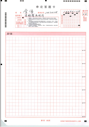 附:申論答題卡樣例
