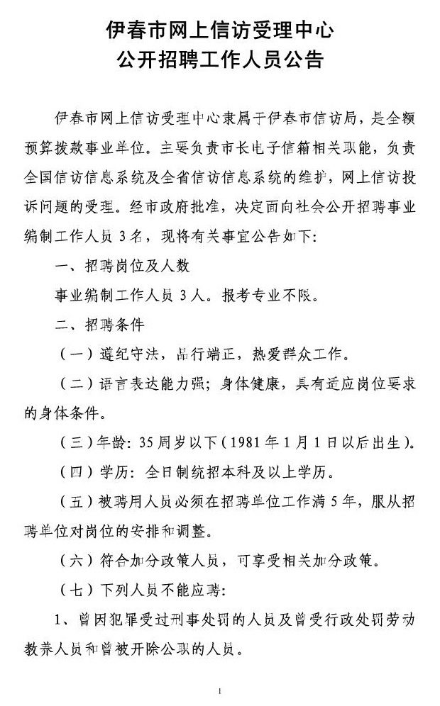 2016黑龍江伊春市網上信訪受理中心招聘公告【招3人】