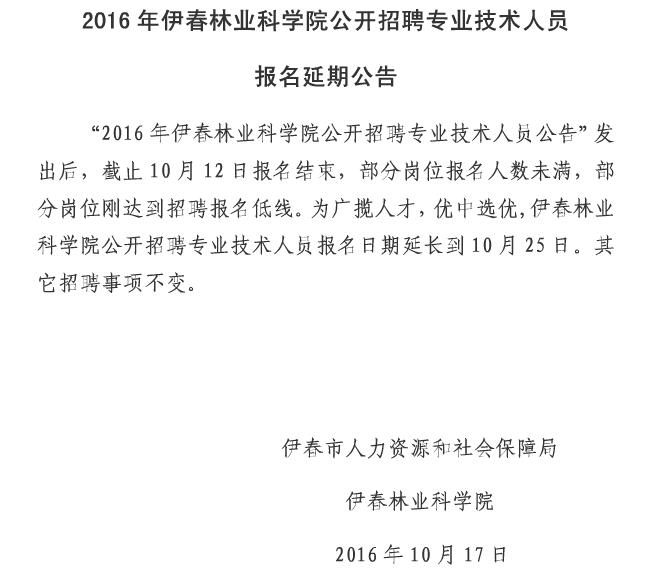 2016黑龍江伊春林業(yè)科學(xué)院招聘專(zhuān)業(yè)技術(shù)人員報(bào)名延期公告
