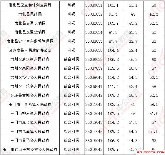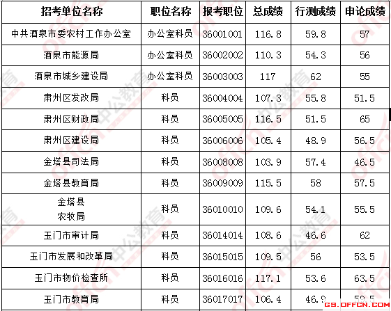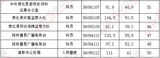 2017年甘肅酒泉公務(wù)員面試入圍最低分?jǐn)?shù)線