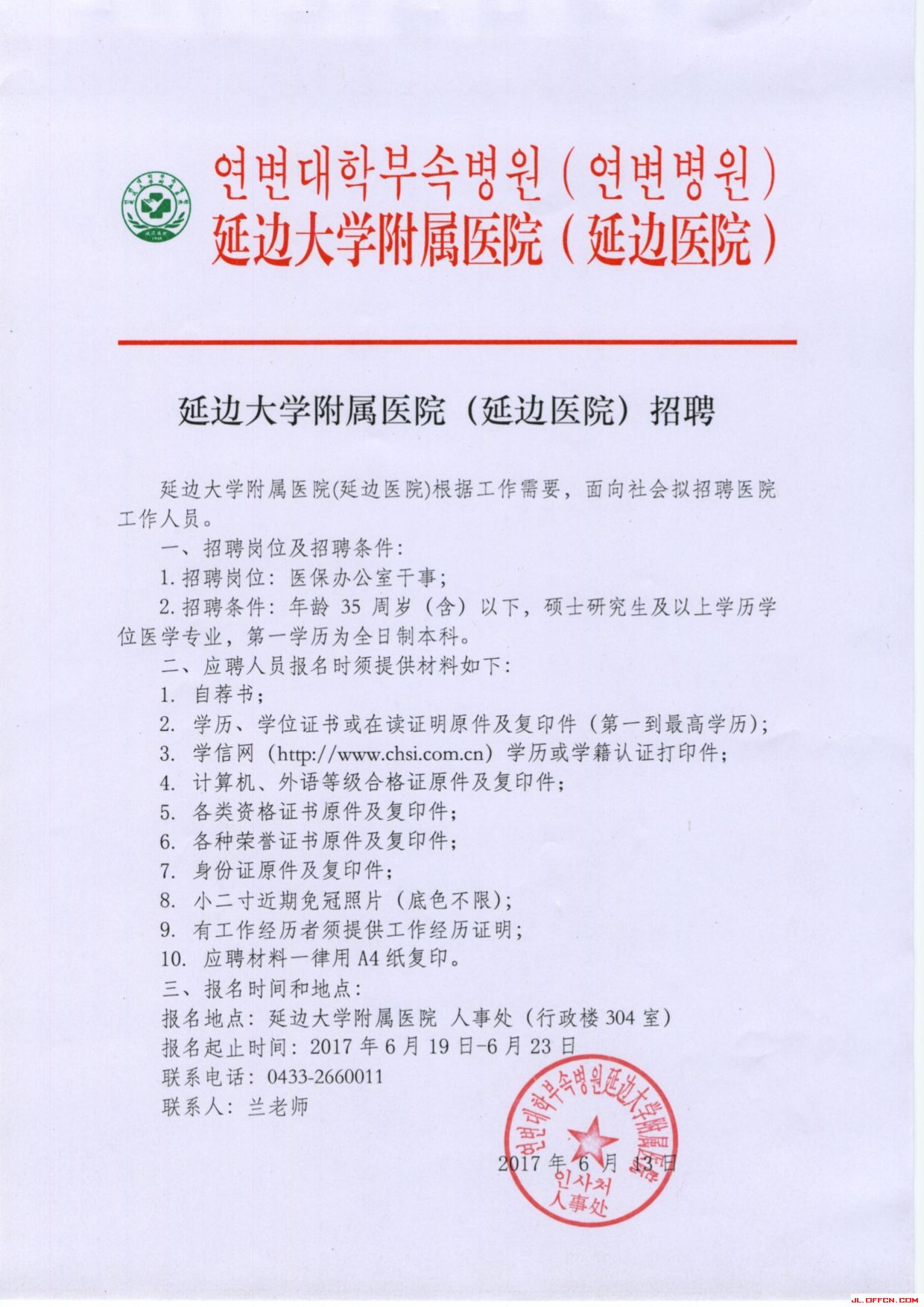 2017年延邊大學附屬醫(yī)院(延邊醫(yī)院)招聘工作人員啟事