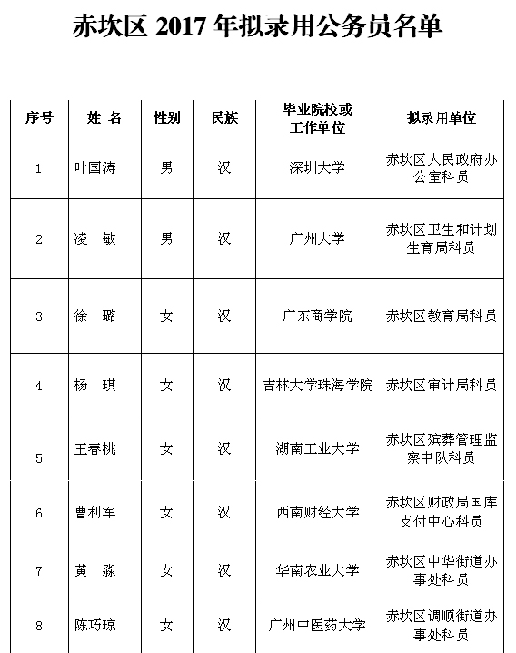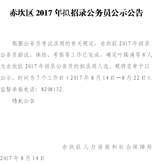 原標(biāo)題:赤坎區(qū)2017年擬招錄公務(wù)員公示公告