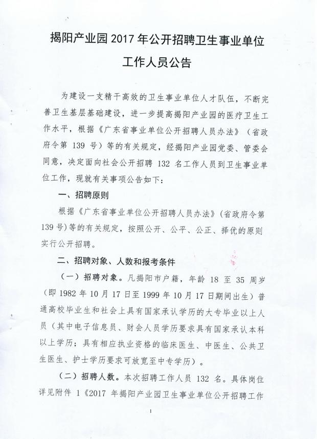 2017廣東揭陽(yáng)產(chǎn)業(yè)園衛(wèi)生事業(yè)單位招聘公告【招132人】