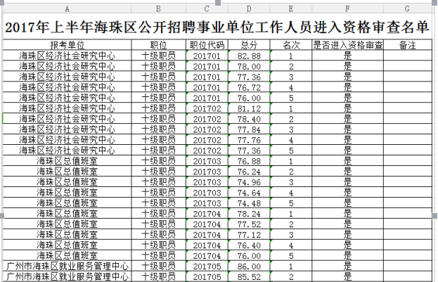 根據(jù)2017年上半年海珠事業(yè)單位面試名單來看。部分崗位筆試成績(jī)達(dá)到80分左右就可以進(jìn)入面試。