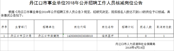 2018年丹江口市事業(yè)單位公開招聘工作人員核減崗位公告