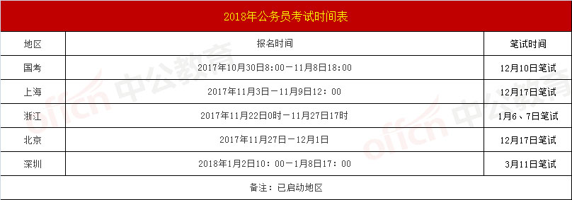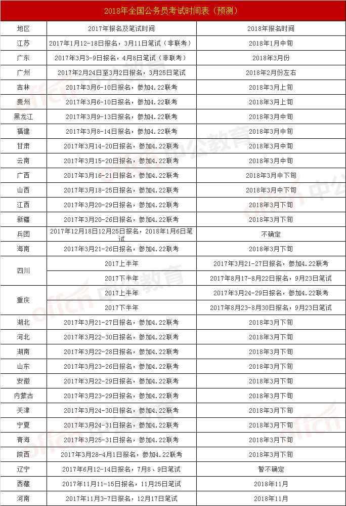 2018全年全國公務(wù)員考試報名、筆試時間匯總