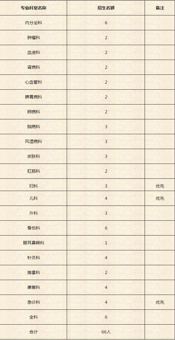 醫(yī)院21個專業(yè)科室將面向全國招收住院醫(yī)師規(guī)范化培訓住培對象,具體專業(yè)及招生名額具體見表1。