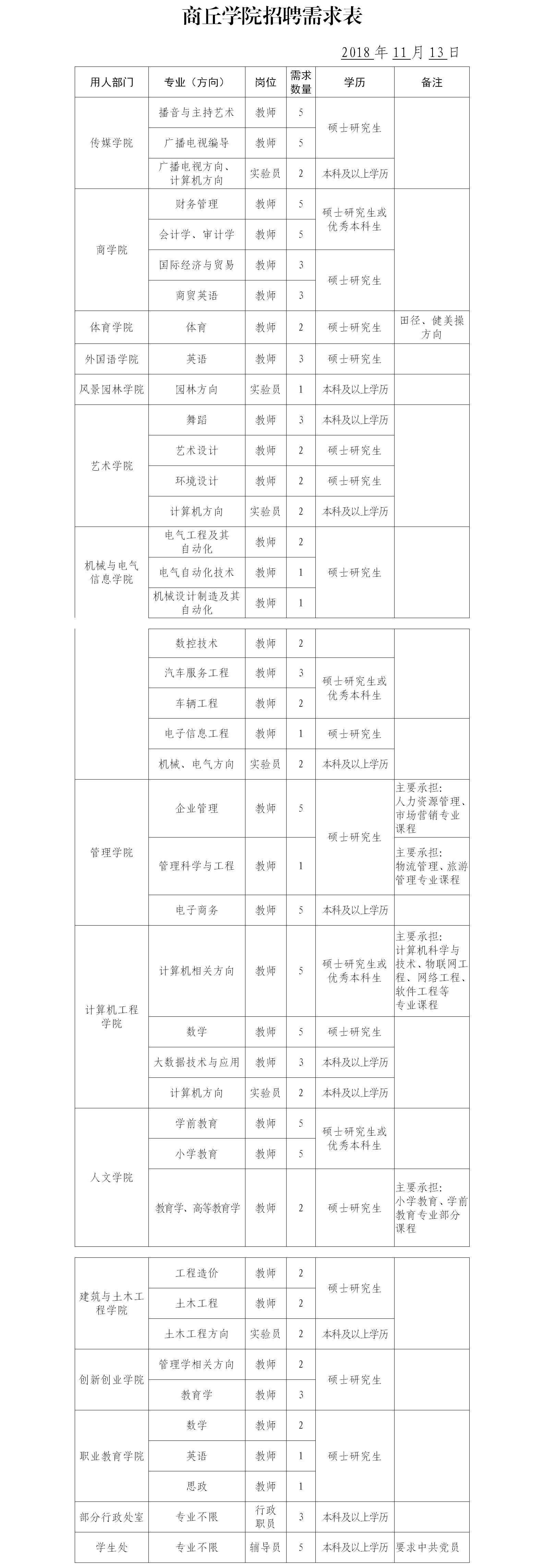 原標(biāo)題:商丘學(xué)院各專業(yè)師資需求表
