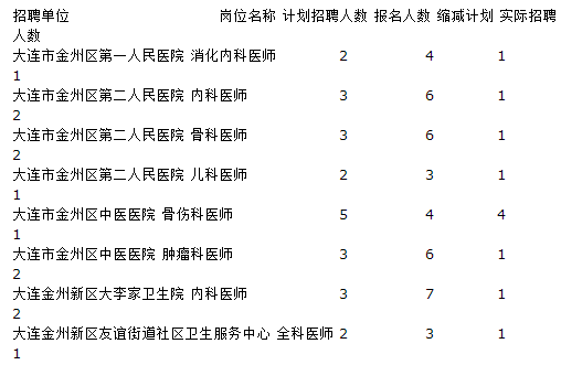 根據(jù)《2015年大連金州新區(qū)部分事業(yè)單位公開招聘工作人員公告》規(guī)定和報名情況,由于此次公開招聘中有55個招聘崗位的有效報考人數(shù)未達(dá)到3:1比例的規(guī)定,現(xiàn)將取消和縮減崗位情況公告如下: