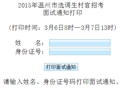 2015年浙江省溫州市選調(diào)生村官招考面試通知打印