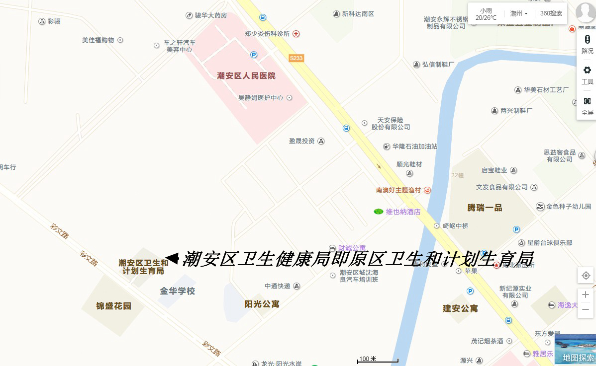 潮州市潮安區(qū)衛(wèi)生健康局,地址:潮州市潮安區(qū)彩文路86號區(qū)衛(wèi)生健康局(候考室設(shè)一樓)。