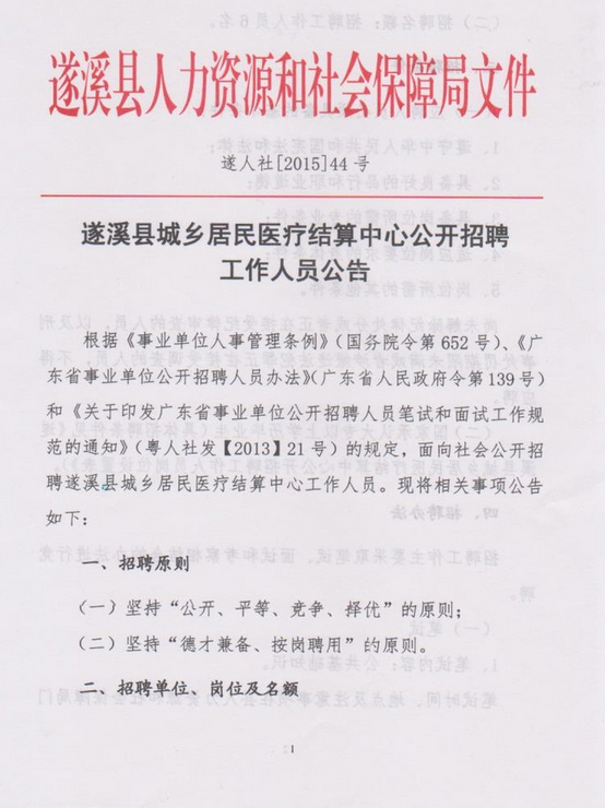 2015廣東遂溪縣城鄉(xiāng)居民醫(yī)療結(jié)算中心招聘公告【6人】