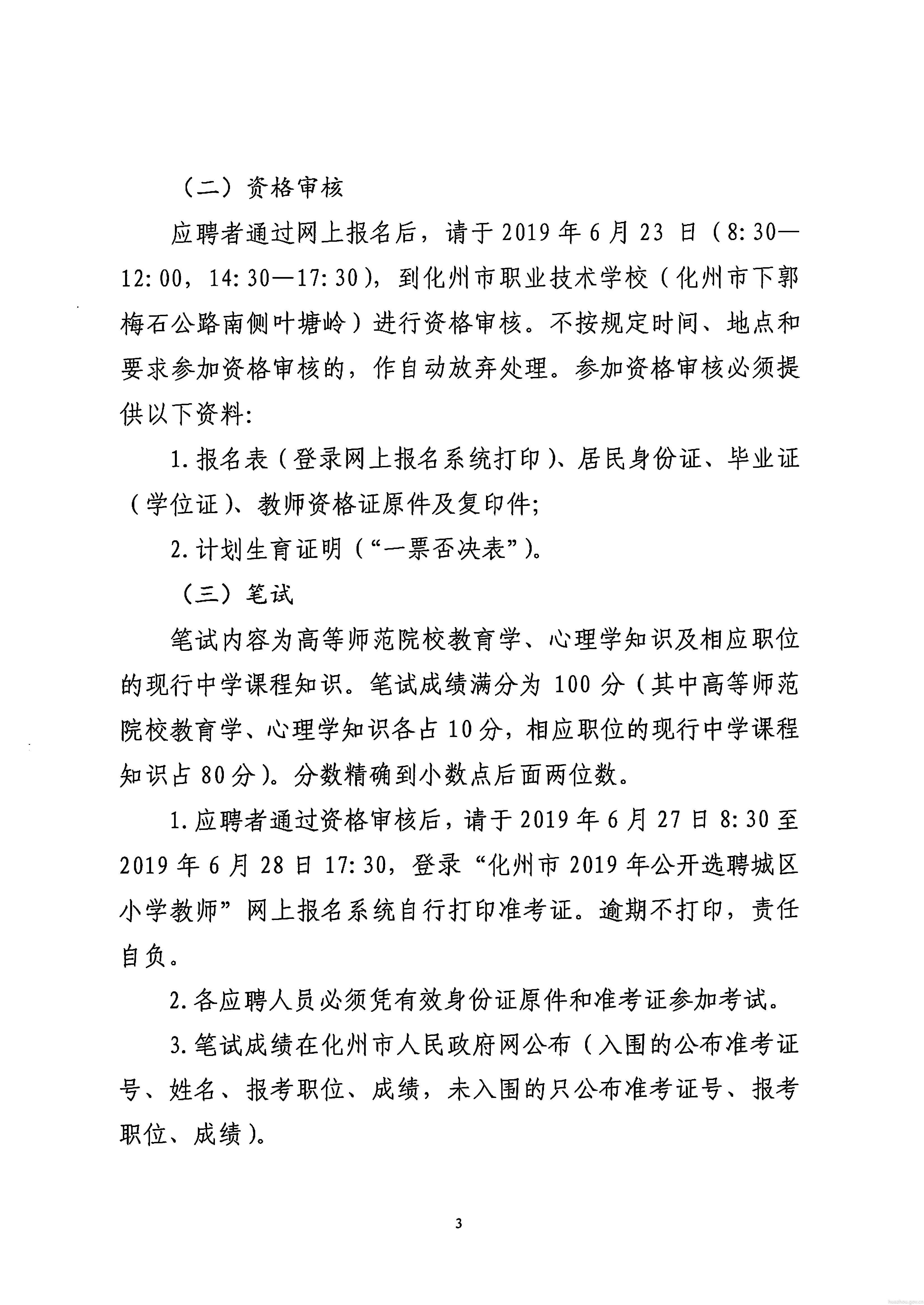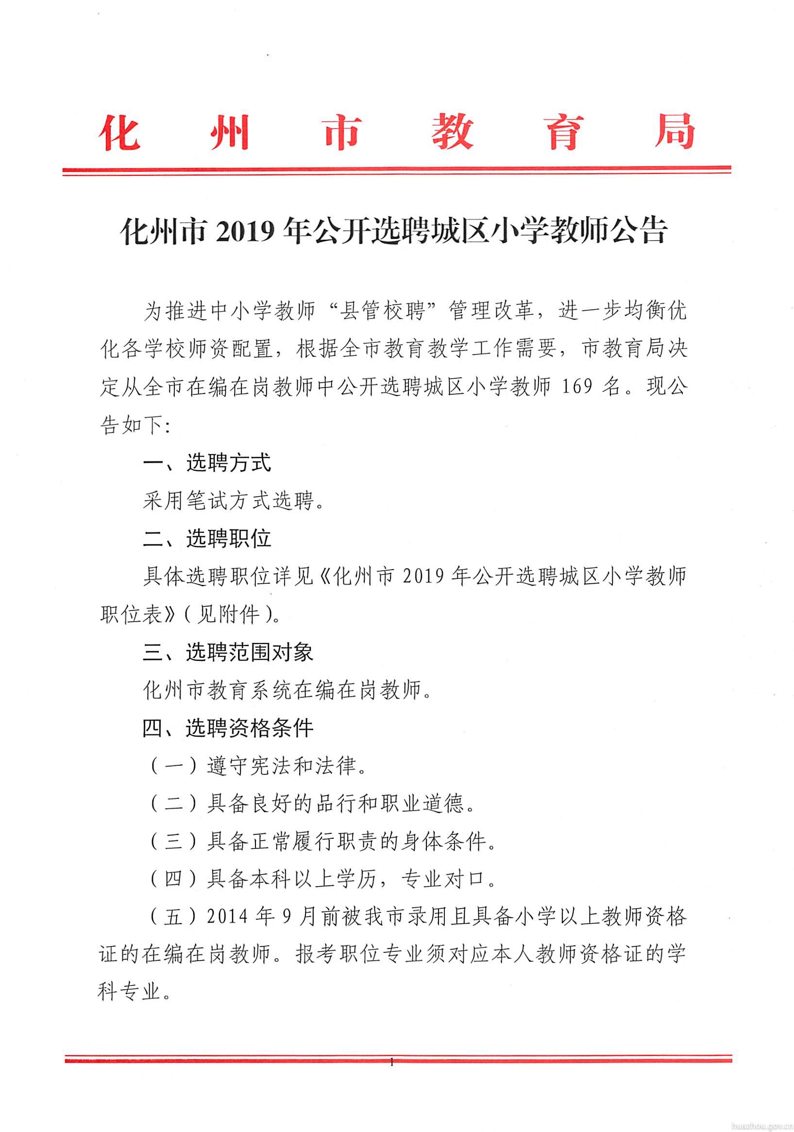 原公告:化州市2019年公開選聘城區(qū)小學(xué)教師公告