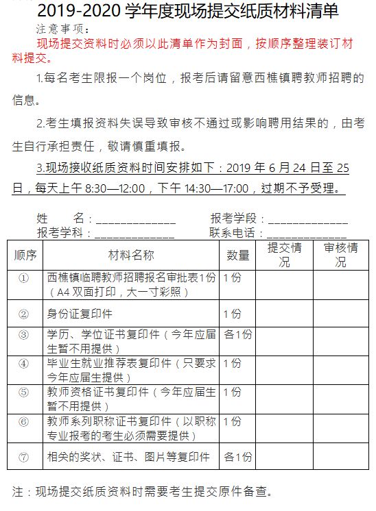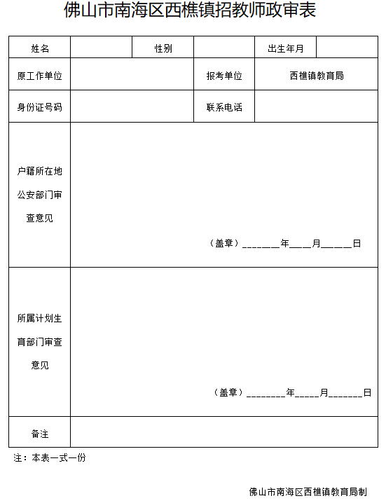 ①西樵鎮(zhèn)臨聘教師招聘報名審批表1份(見附件3,要求單張A4紙雙面打印,相片為近期大一寸彩照);