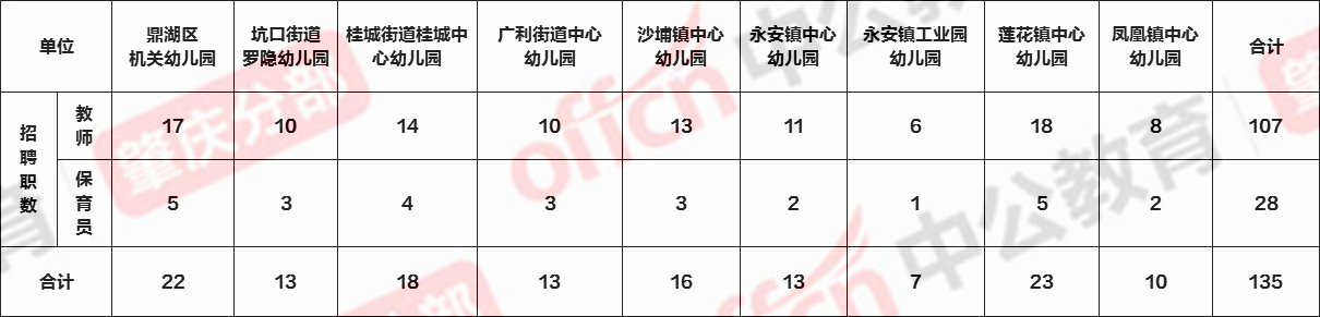 (一)招聘職數(shù)。共招聘135名,其中幼兒園教師107名,保育員(含保健員)28名(詳見(jiàn)附件1)。
