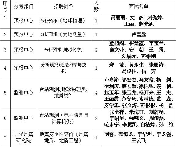 青海省地震局2015年招聘工作人員面試名單一覽表