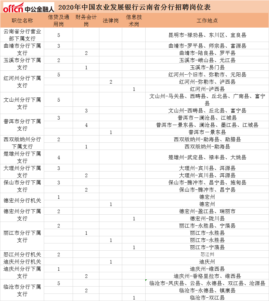 2020中國(guó)農(nóng)業(yè)發(fā)展銀行云南分行校園招聘78人公告
