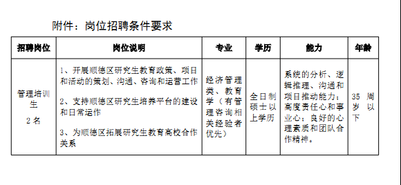2015年廣東省佛山市順德區(qū)研究生教育發(fā)展中心招聘2人公告