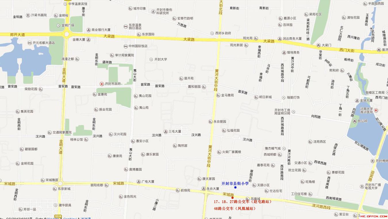 注意:因道路施工,請沿金明西街(金明廣場向西300米)向北500米走到頭后,向西200米即可到達(dá)開封市集英中學(xué)