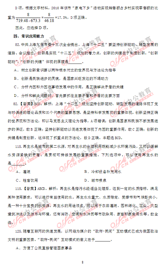 2012年上海市公務(wù)員考試行測(cè)(B卷)部分及答案解析